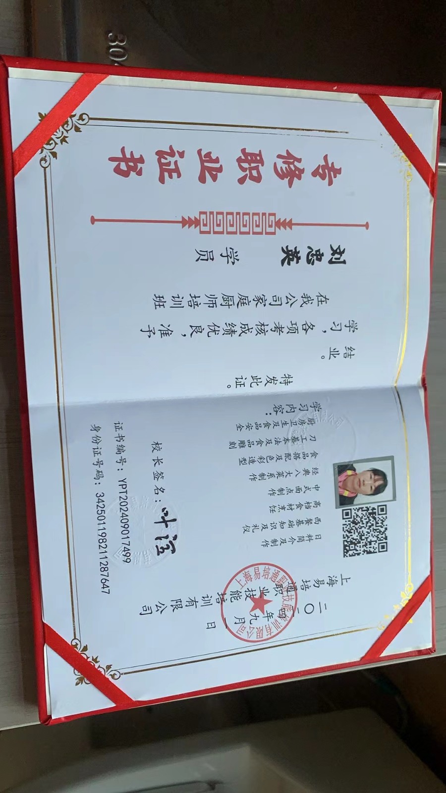 证书:收纳证、中西餐证: