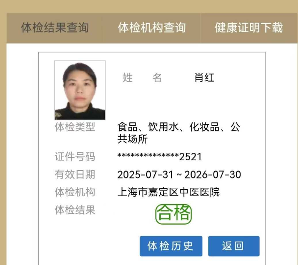 姓 名:肖红 籍 贯:江苏嫁上海 年 龄:41 身 高:162 体 重:63 擅 长:烧饭保洁,做各种点心 证 件:身份证,健康证 工作经历:在幼儿园做点心师,利用周末,放寒暑假做家政兼职 2023年底~至今,周末一直在嘉宝梦之湾一个客户家别墅,打扫卫生 2024年暑假在嘉定惠民家园,短期一个月照顾一个产妇,主要负责烧饭保洁 自我评价:性格开朗,做事认真,利索,有服务意识,能够积极听取客户意见或建议