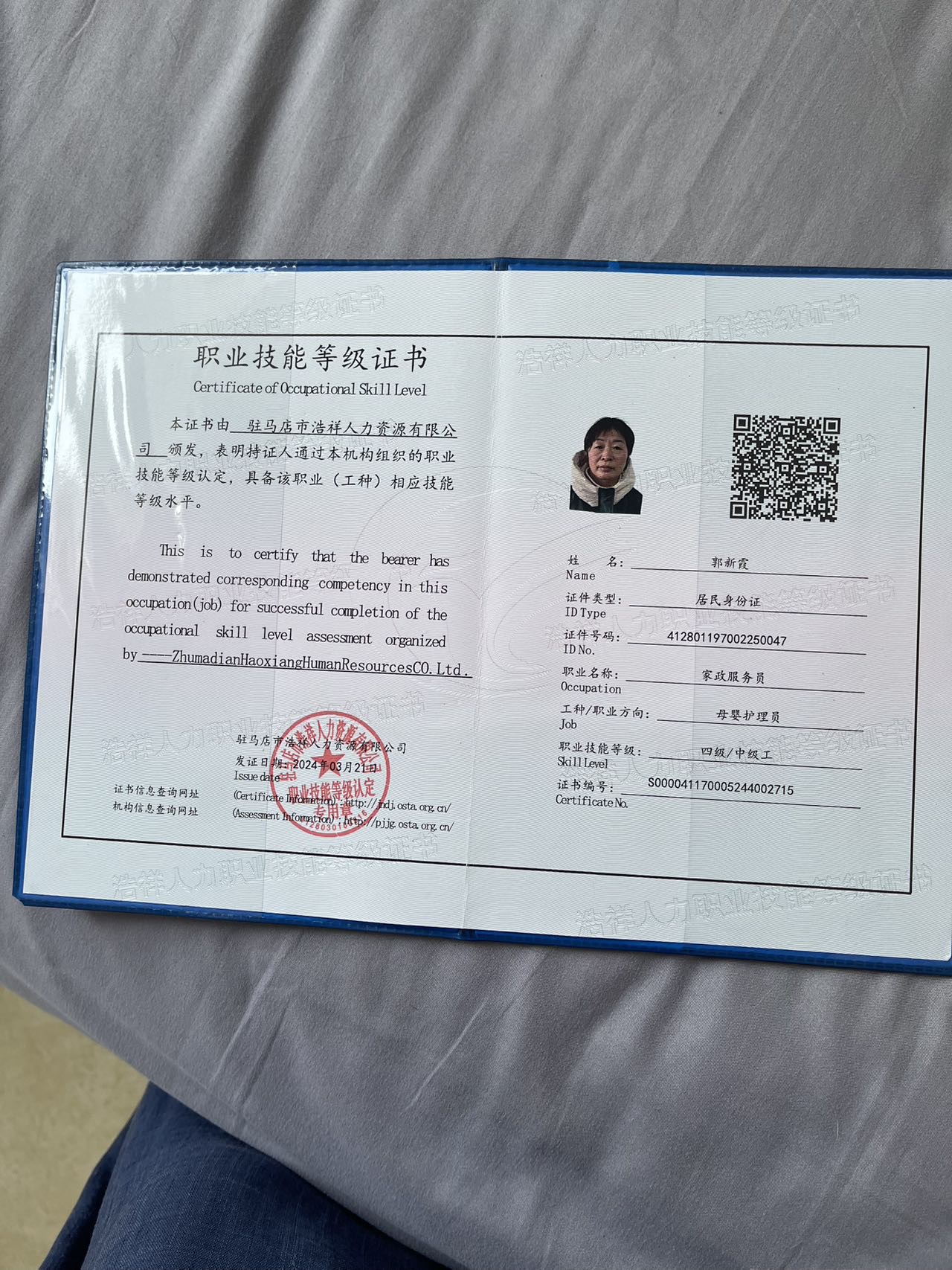 本人特长谈不上,我的宗旨就是踏踏实实干好该干的活,本本份份做人就足够了。近几年先后做过育婴师,家庭保姆