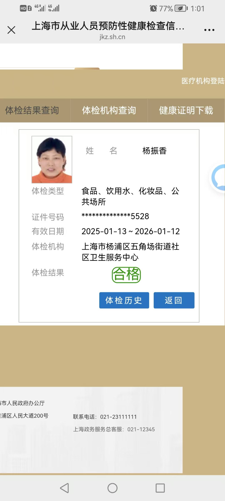 姓名:杨振香 年龄:53 学历:初中 婚姻: 已婚 籍贯:江苏 身高:161m 体重:51公斤 经验:9年多 2016年~2025年,一直在杨浦做钟点工 具备技能:擅长烧菜、本帮菜、红烧、清蒸、海鲜、煲汤、面食、辅食、熨烫、居家保洁、接送孩子。 综合评价:人品好,务实本分,性格温和,烧饭好,保洁到位,有爱心,有耐心,阿姨自己对卫生有要求、做事麻利,勤快,眼里有活,不计较。
