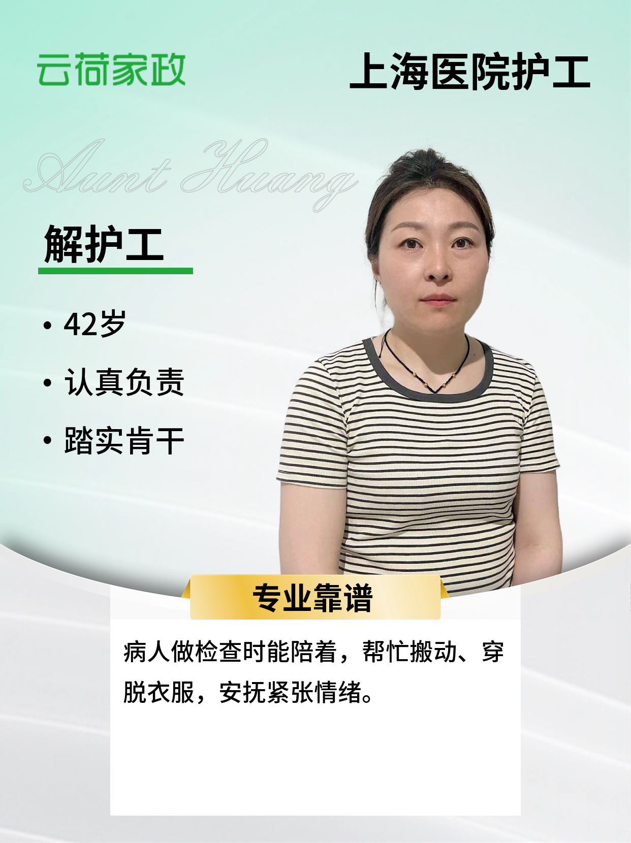 温馨提示:云荷家政平台发布的简历信息由劳动者本人提供,云荷家政平台对信息的真实性、及时性、正确性均不做任何形式保证。