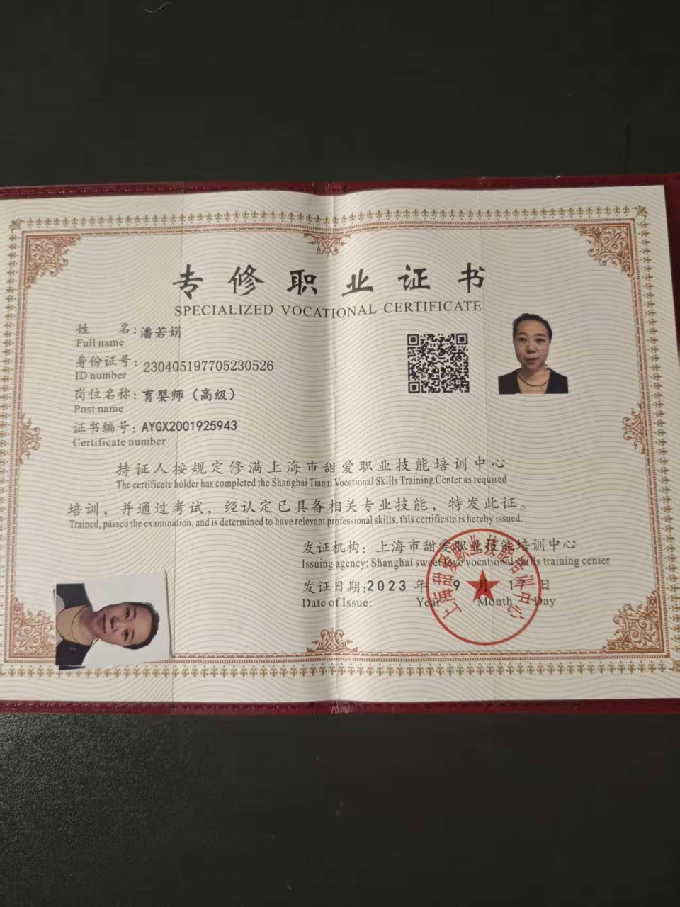 2022~2023年在嘉定安亭住家,做饭保洁,接送6岁孩子上下学,客户三口之家。