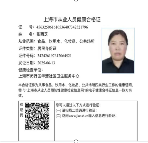 2025年6月-2025年10月在上海市闵行区华漕镇敬老院做护工人员。
