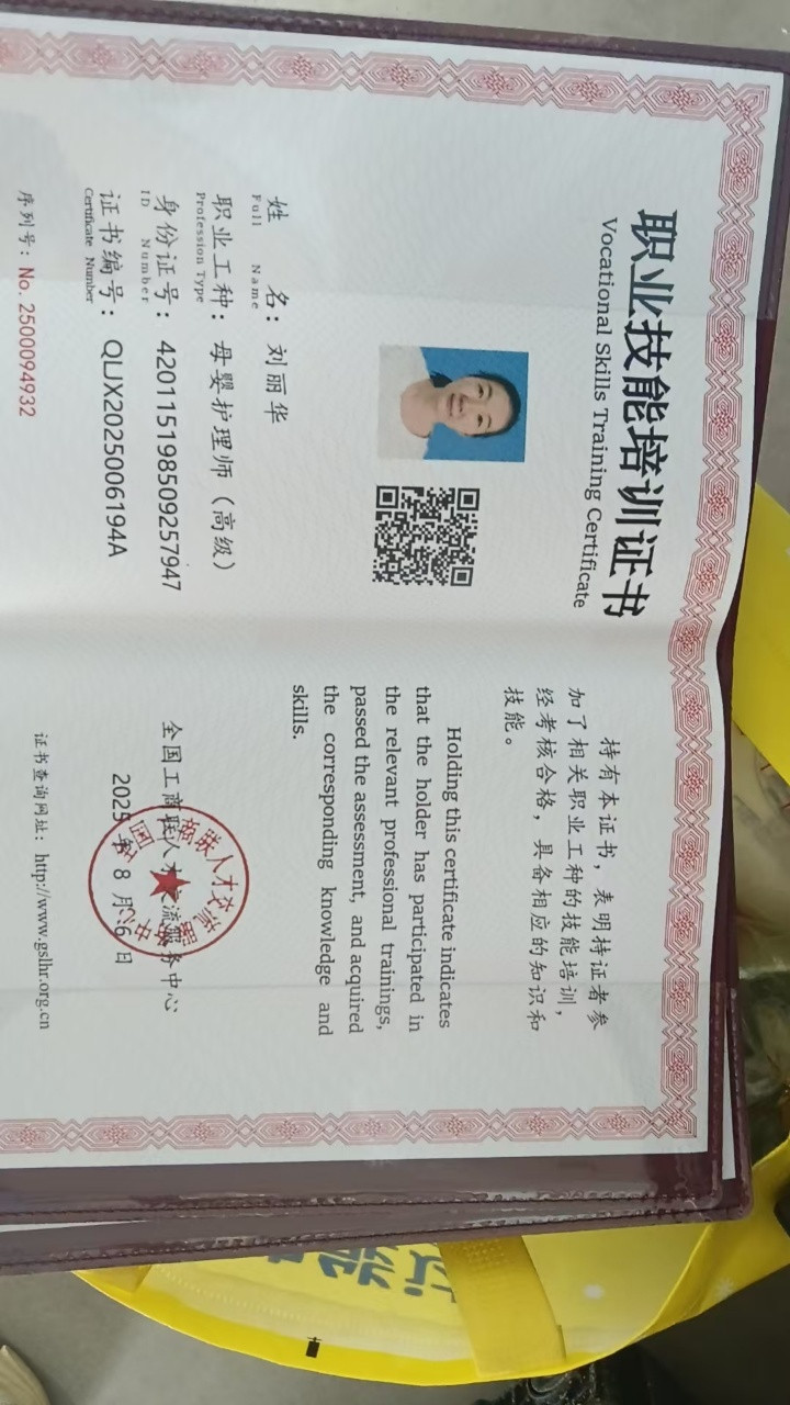 • 2024年至2025年春来升级母婴证催乳师证 育婴师证和早教 证:上户月子中心三个月同时被客户带回家,11月8号才下户。