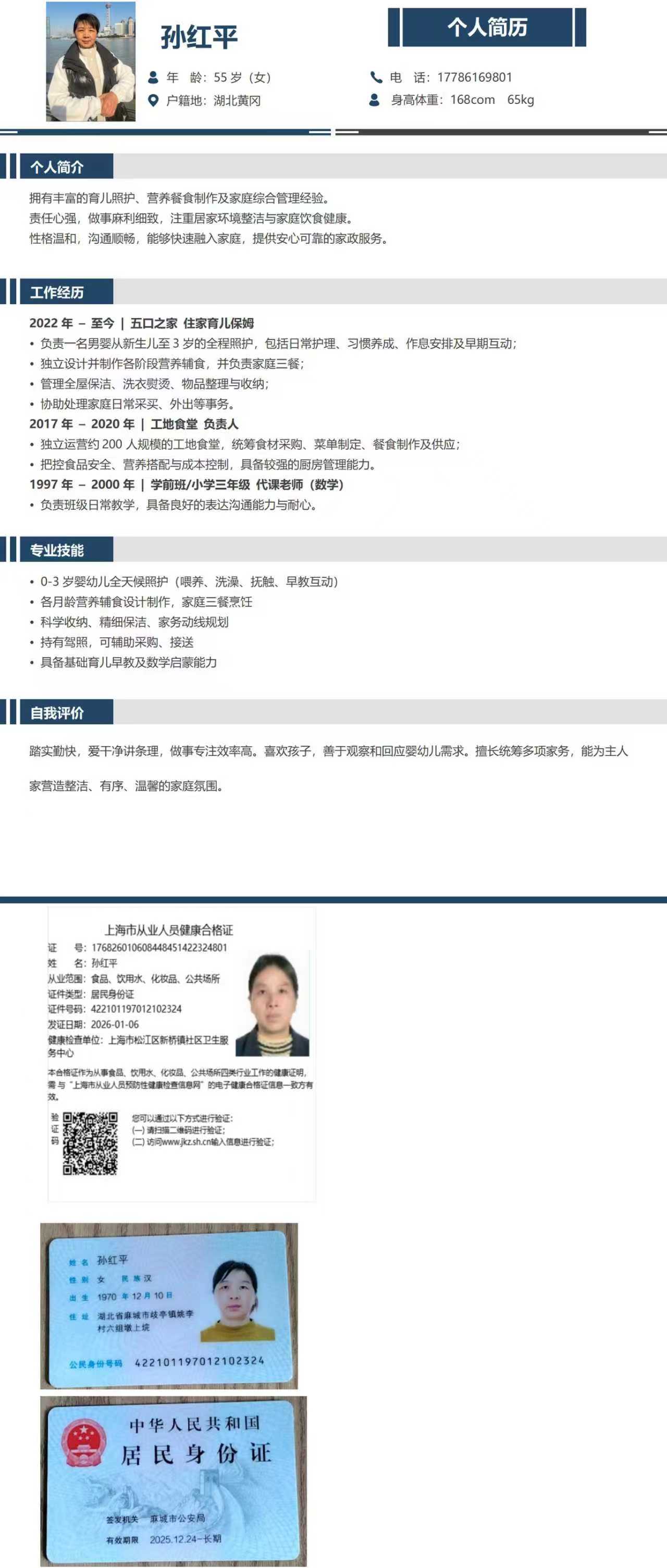 温馨提示:云荷家政平台发布的简历信息由劳动者本人提供,云荷家政平台对信息的真实性、及时性、正确性均不做任何形式保证。