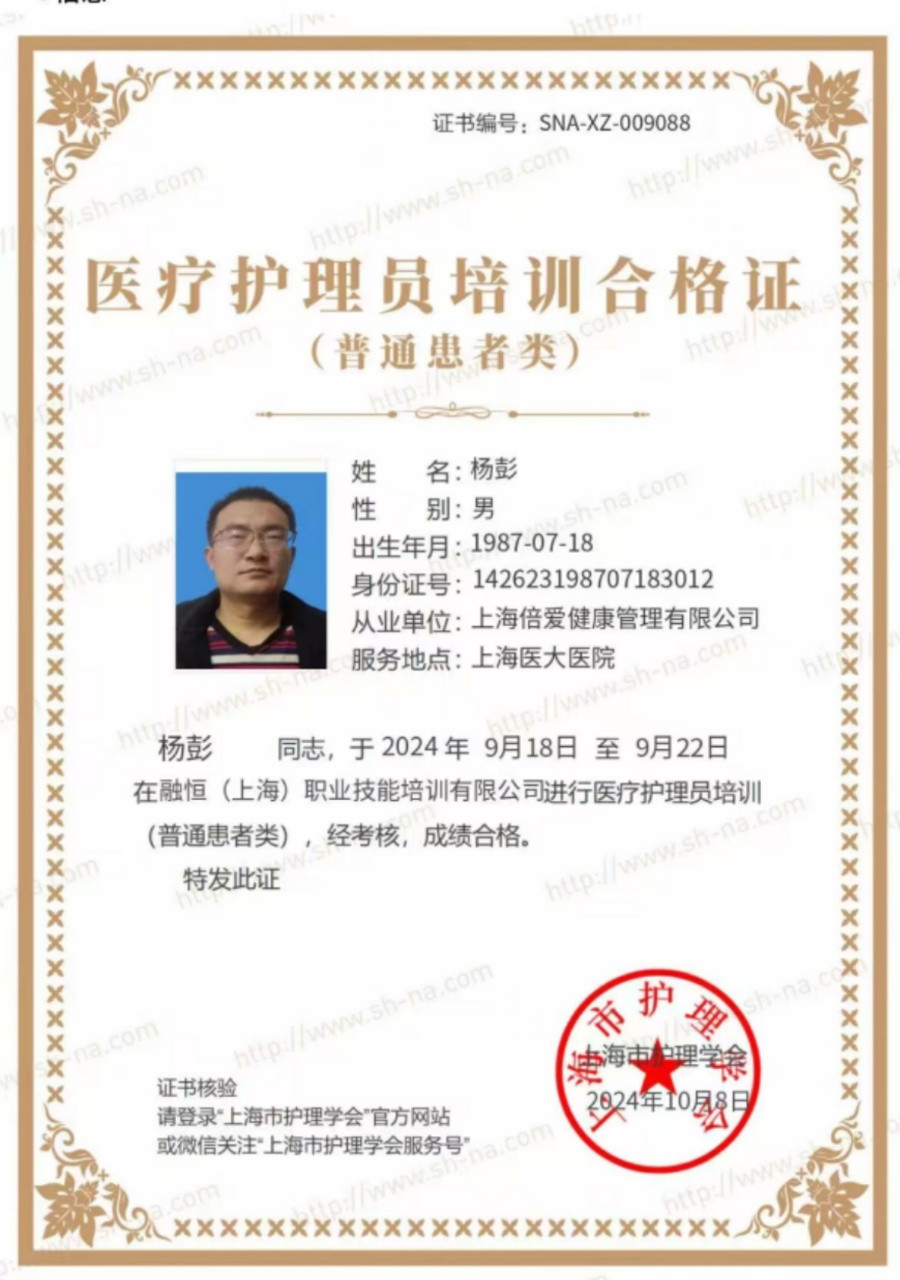 2022年–2023年在华山医院病房护理过脑梗病人,进行康复锻炼,照顾日常饮食起居