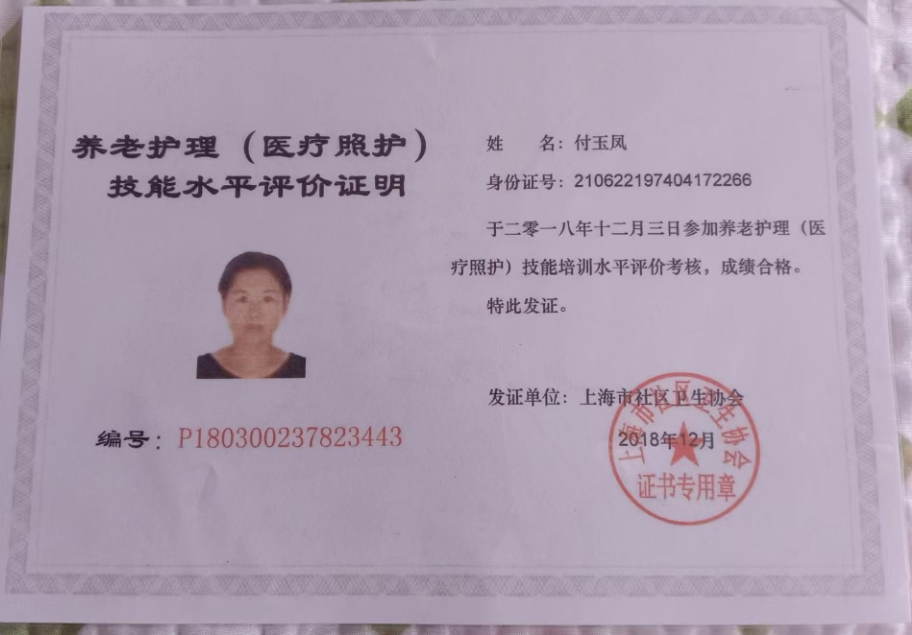 2022年~2025 年,在普陀区照顾一对老夫妻,女老人全自理,男老人半自理。