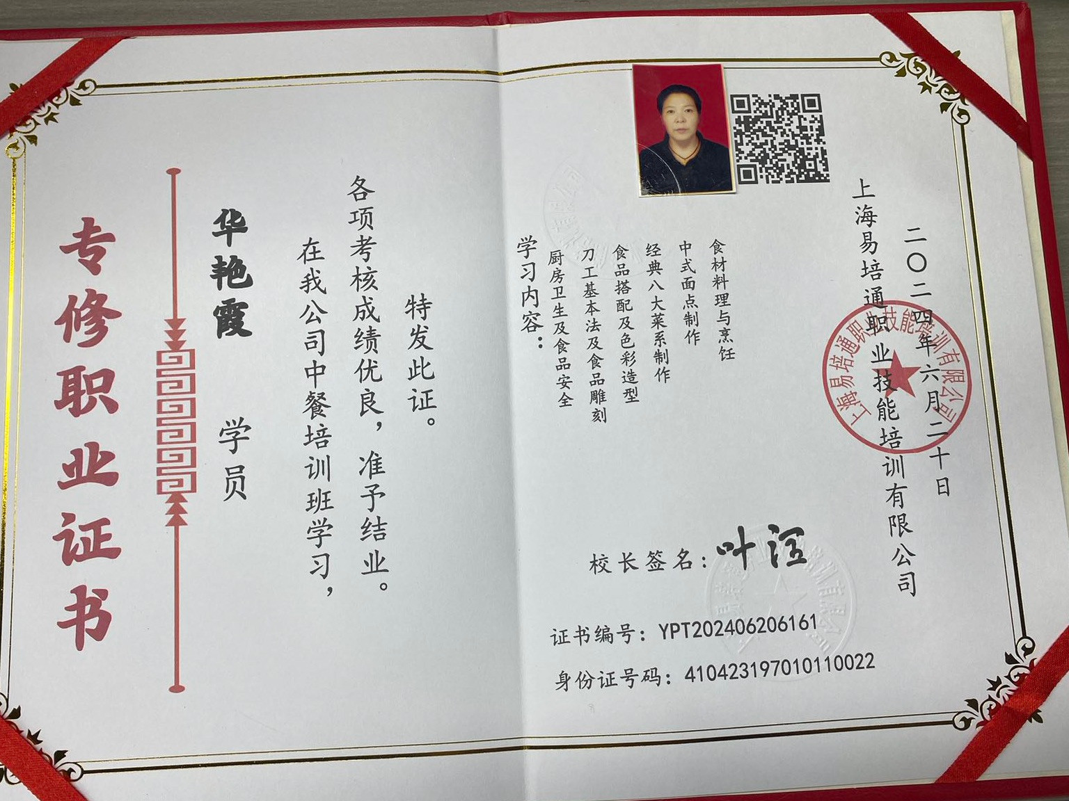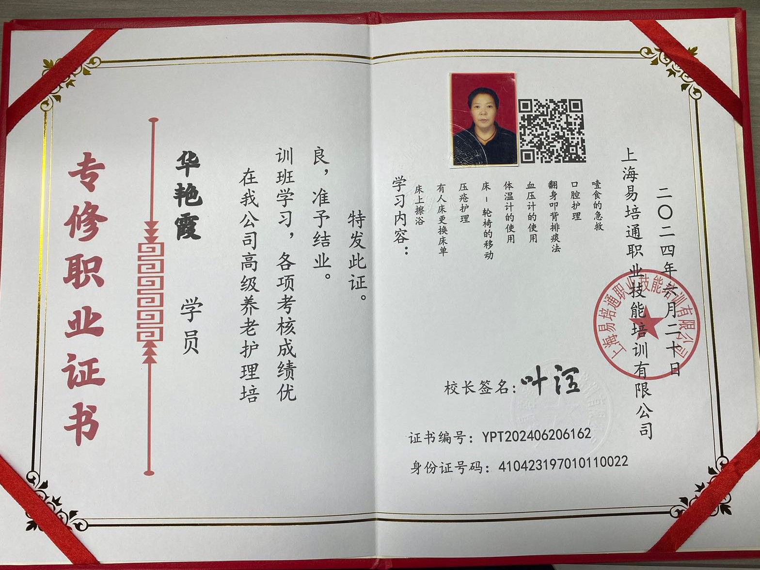 证书:厨师证,养老护理证