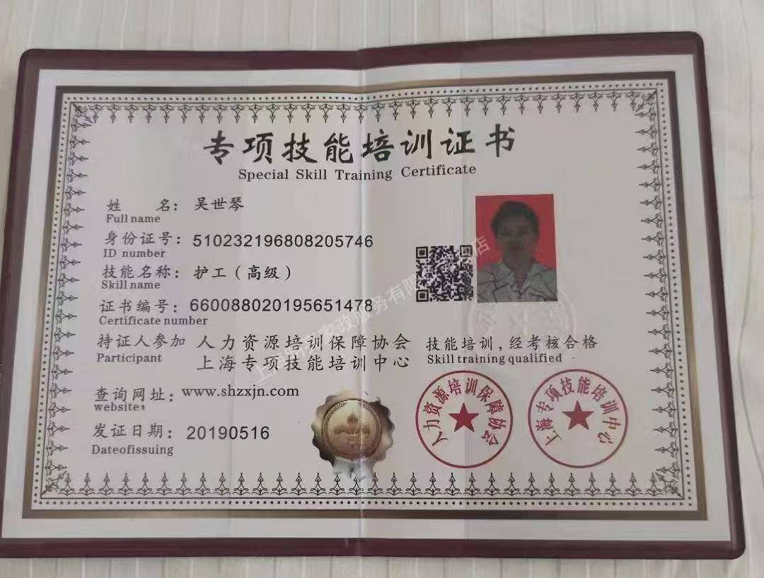 2015年11月至2020年6月在上海静安区第十人民医院心血管科做一对多护工。 2020年10月至2024年11月份在上海大华医院做一对多护工。