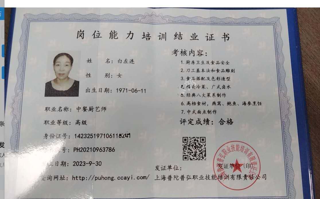 姓名:白阿姨 籍贯:山西太原 学历:中专 身高:166cm 体重:65kg 专业技能: 中餐、家常菜、煲汤、整理收纳 【服务技能】保洁 收纳 五星级酒店标准 自个评价】有耐心,有责任心强,有洁癖,性格直爽,做事条理性好,不斤斤计较,服从雇主安排。 【个人优势】家阵八年,喜欢烹饪。