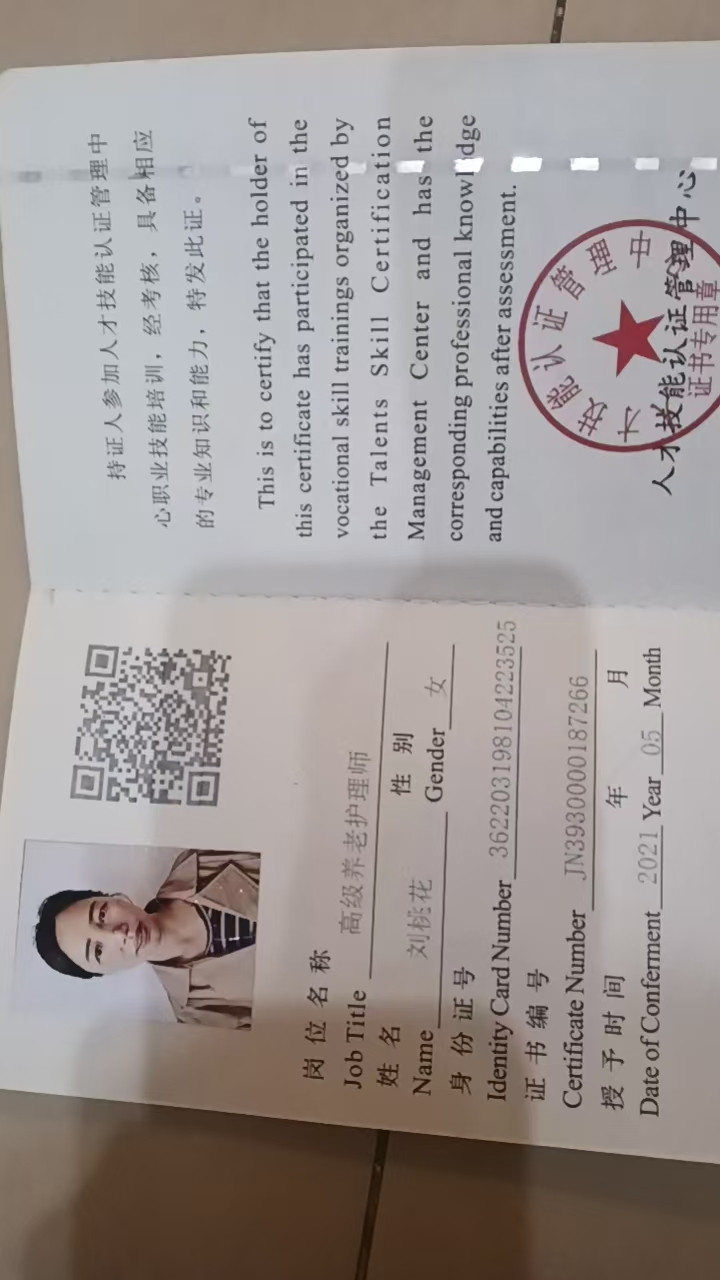 姓名:刘桃花 年龄:44 籍贯:江西 学历:初中 身高:165 体重:120 电话:13320053092 家庭成员:老公在外面做事,儿子在上大学 家政经验: 2022--2023年,照顾的一对老夫妻。 2024年-2025年10月份,照顾弱智不能自理81岁女老人。