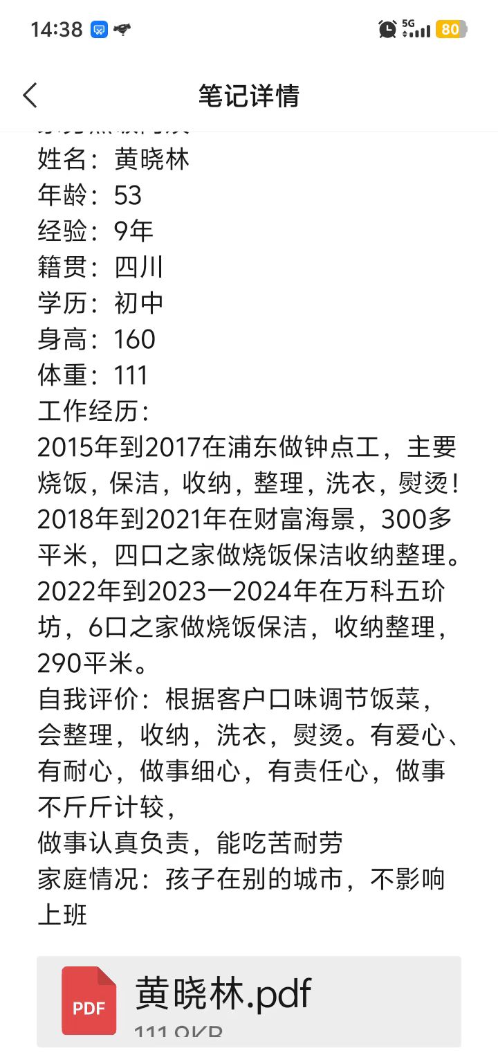 温馨提示:云荷家政平台发布的简历信息由劳动者本人提供,云荷家政平台对信息的真实性、及时性、正确性均不做任何形式保证。