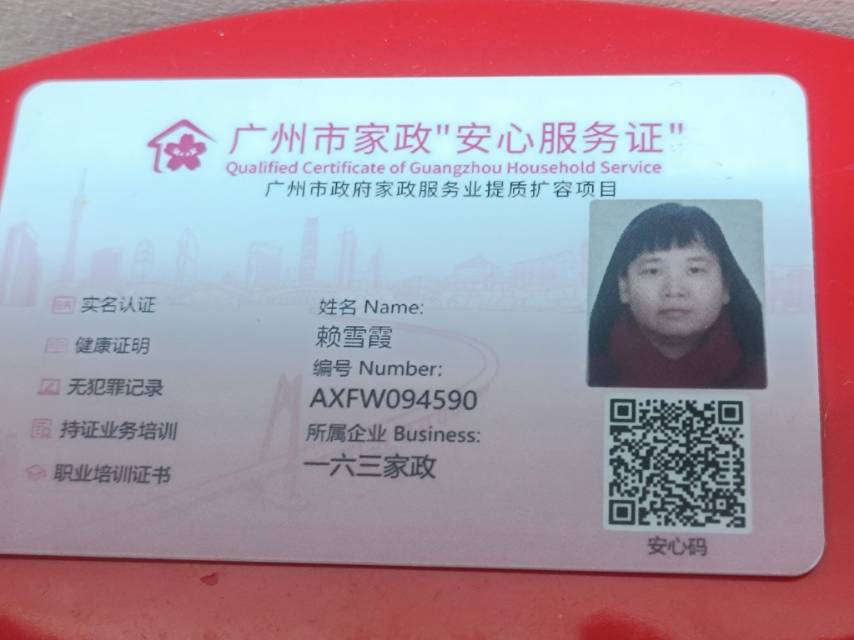 姓名:赖雪霞 性别:女 电话号码:13650791352 籍贯:广东省普宁市南径镇青洋村 民族:汉 属相:猪 学历:初中 身高:1.56米 体重:56公斤 语言:国语,潮汕话,白话 擅长菜式:做饭好吃,广东潮汕菜,粤菜,海鲜, 广式煲汤,营养餐都会 婚姻情况:已婚 持有证书:有