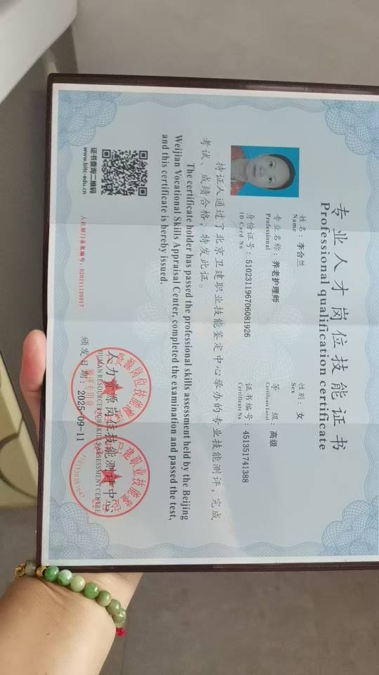 我本人心善良 不计较 喜欢笑 有护工证 驾驶证 健康证 有工作经验 3-5年 我这个人喜欢干干净净 不昨昨 穿衣服喜欢德体 显年轻有气质 好相处 暂时要2026年4月10号左右上岗