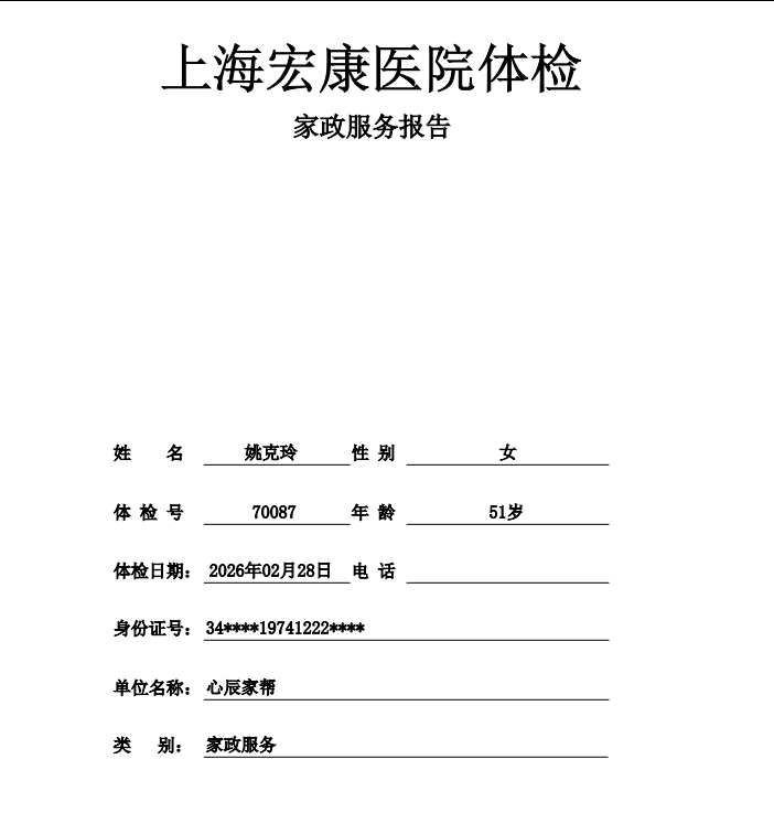 姓名: 姚克玲 年龄:51 民族:汉族 身高:167 cm 体重:65kg 证件:健康证 学历:初中; 已做六年家政服务 18年之前在上海住家别墅家庭烧饭保洁 2019—2025年阿姨一直在普陀区做钟点工,主要工作做饭保洁。 推荐理由:能吃苦,做事认真负责不计较,有耐心爱心,做菜好吃,保洁到位,能迎合客户意思做事,一直受到客户好评。