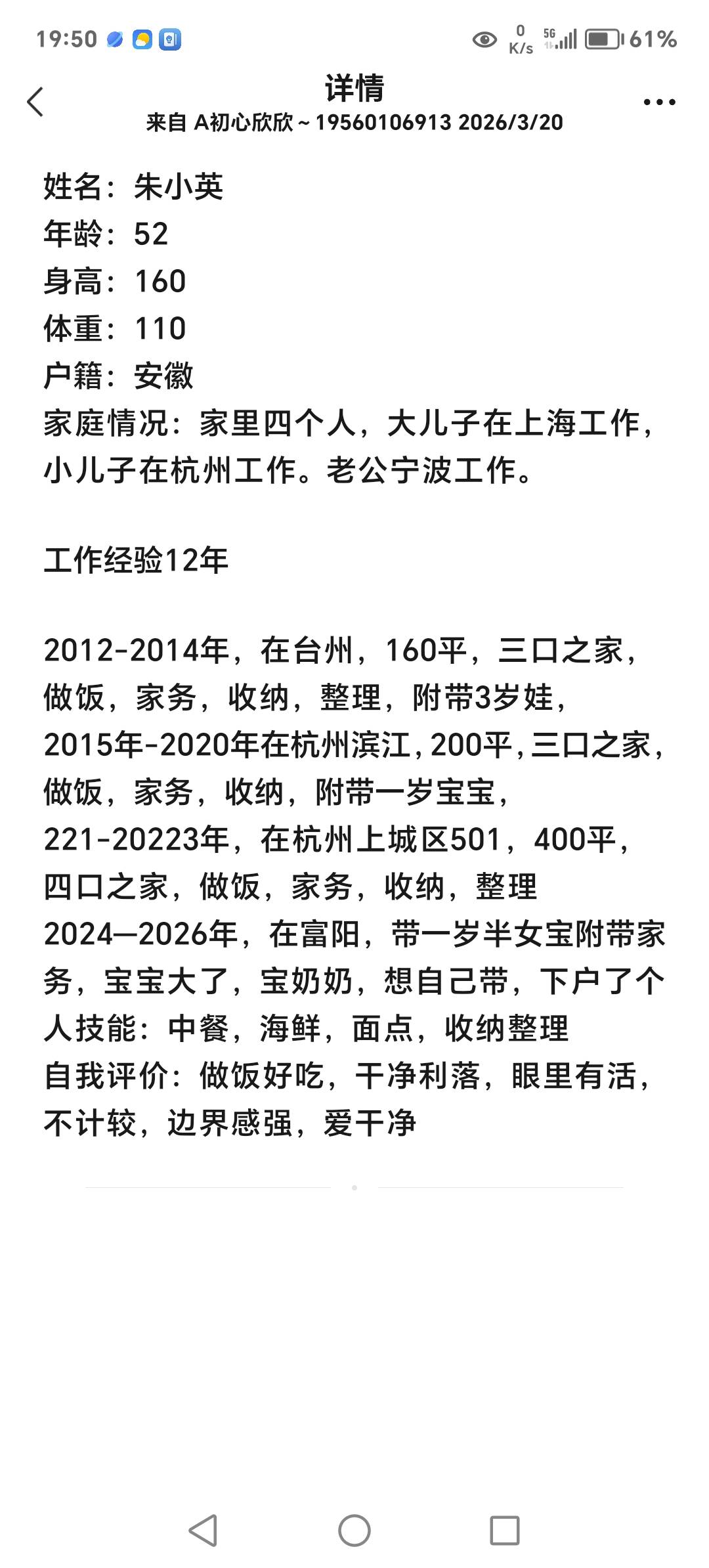 温馨提示:云荷家政平台发布的简历信息由劳动者本人提供,云荷家政平台对信息的真实性、及时性、正确性均不做任何形式保证。