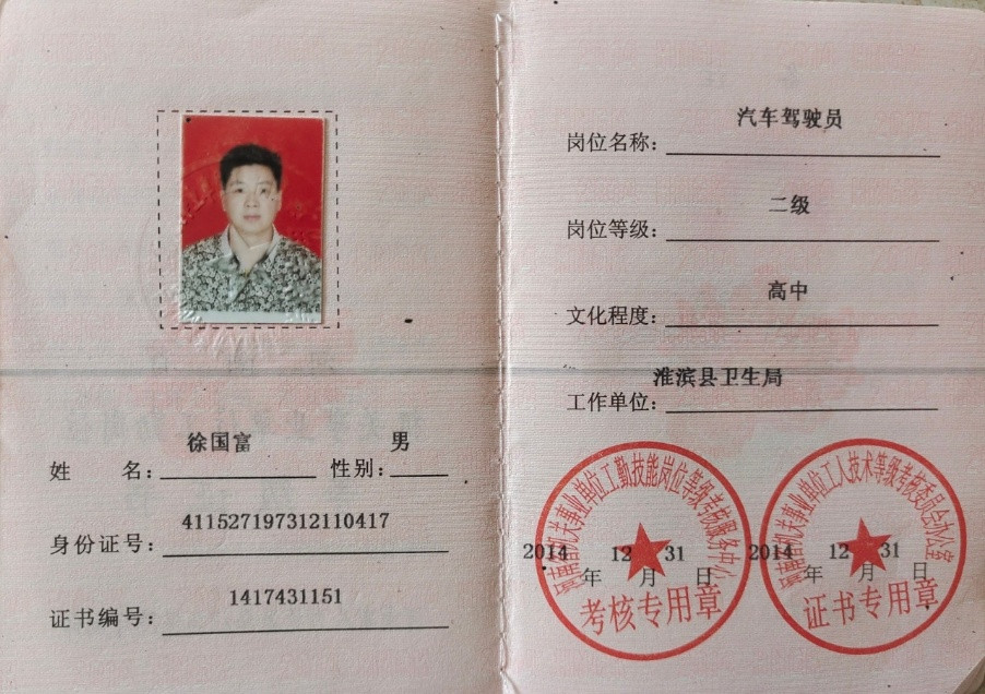 1996.12-至今 河南省信阳市淮滨县卫生健康委员会领导专车司机及办公室工作。