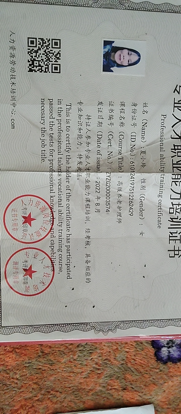 夏小玲,1996年至2022年任小学教师,20222年至今照顾老人,技能好,擅长制作面食干净,利落,责任心强。